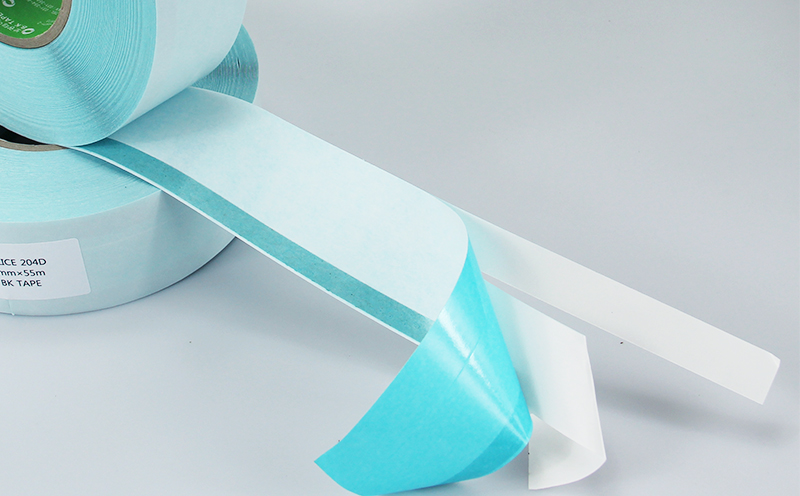 一種專門為紙張高速接駁、平版紙高速接駁、新聞紙高速接駁、造紙廠不停機接紙而設(shè)計的接駁膠帶,除了背面離型紙帶裂線設(shè)計外,膠層也采用水溶性膠水。